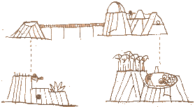 Since this break took place they have interfered with the surface in superficial ways, occasionally sabotaging one of Gehn’s constructions, or stealing food from the villagers. They wear strange masks and costumes during their short forays to the islands surface, and take this regalia very seriously, refusing to be seen by anyone outside the Moiety unless they are properly attired. They got much pleasure out of the fact that those on the surface are